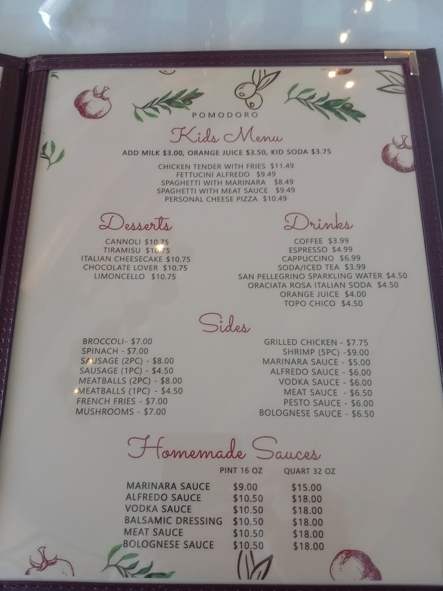 And don't forget to explore their delightful dessert options—try the Cannoli for a sweet symphony of flavors that transports you straight to Italy, or indulge in a slice of the rich Chocolate Lovers Cake. Every bite is crafted with care and precision, showcasing the high-quality ingredients that Pomodoro prides itself on.